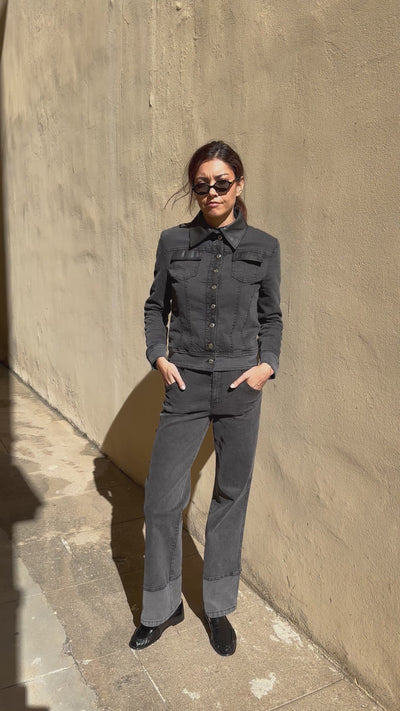 Le blouson Agathe incarne l’équilibre parfait entre décontraction et raffinement. En denim gris rehaussé de finitions en cuir vegan Noir, il capte l’esprit citadin avec une touche très couture.