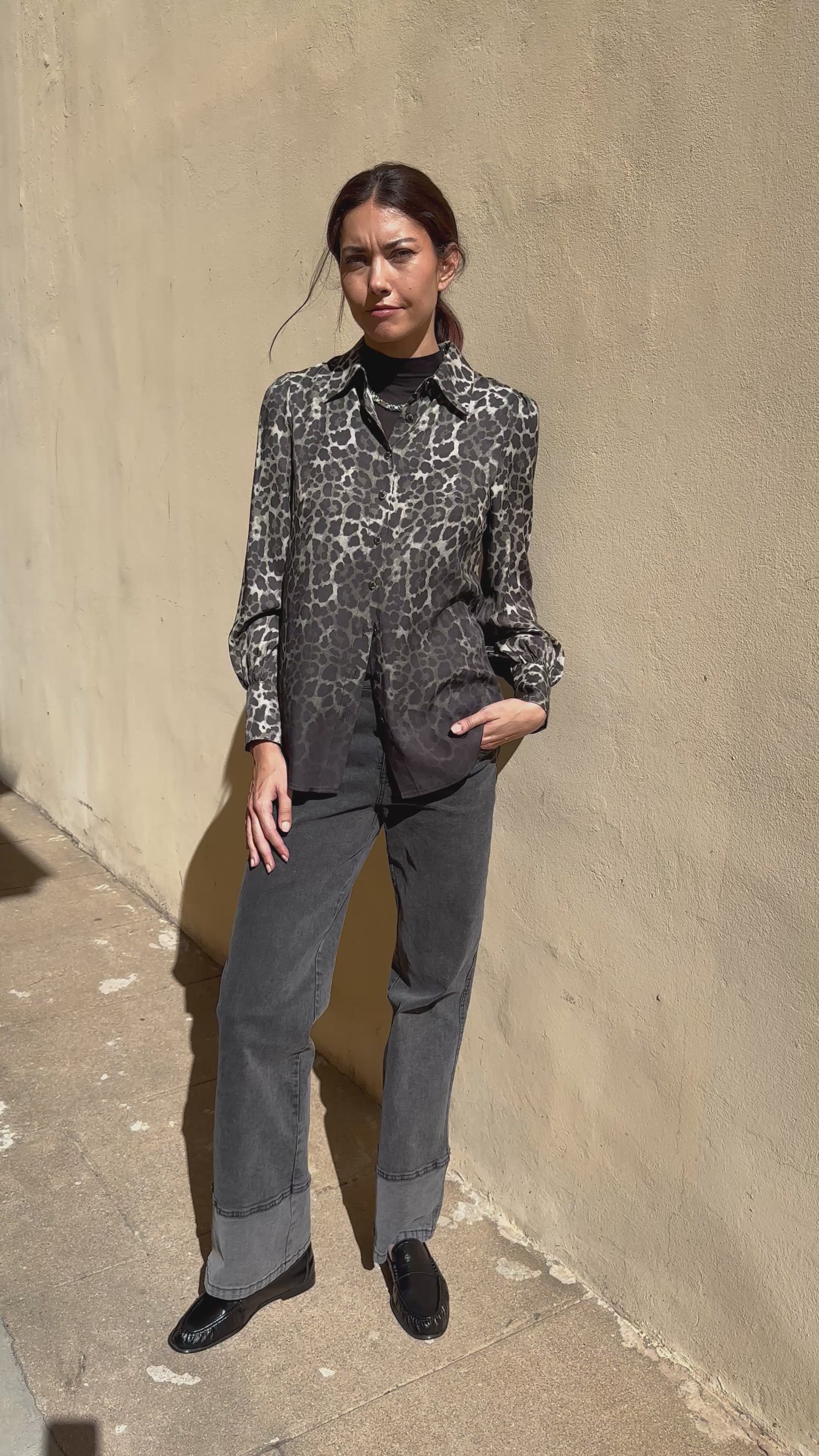 Chemise Aimé en viscose manches longues imprimé léopard Kaki