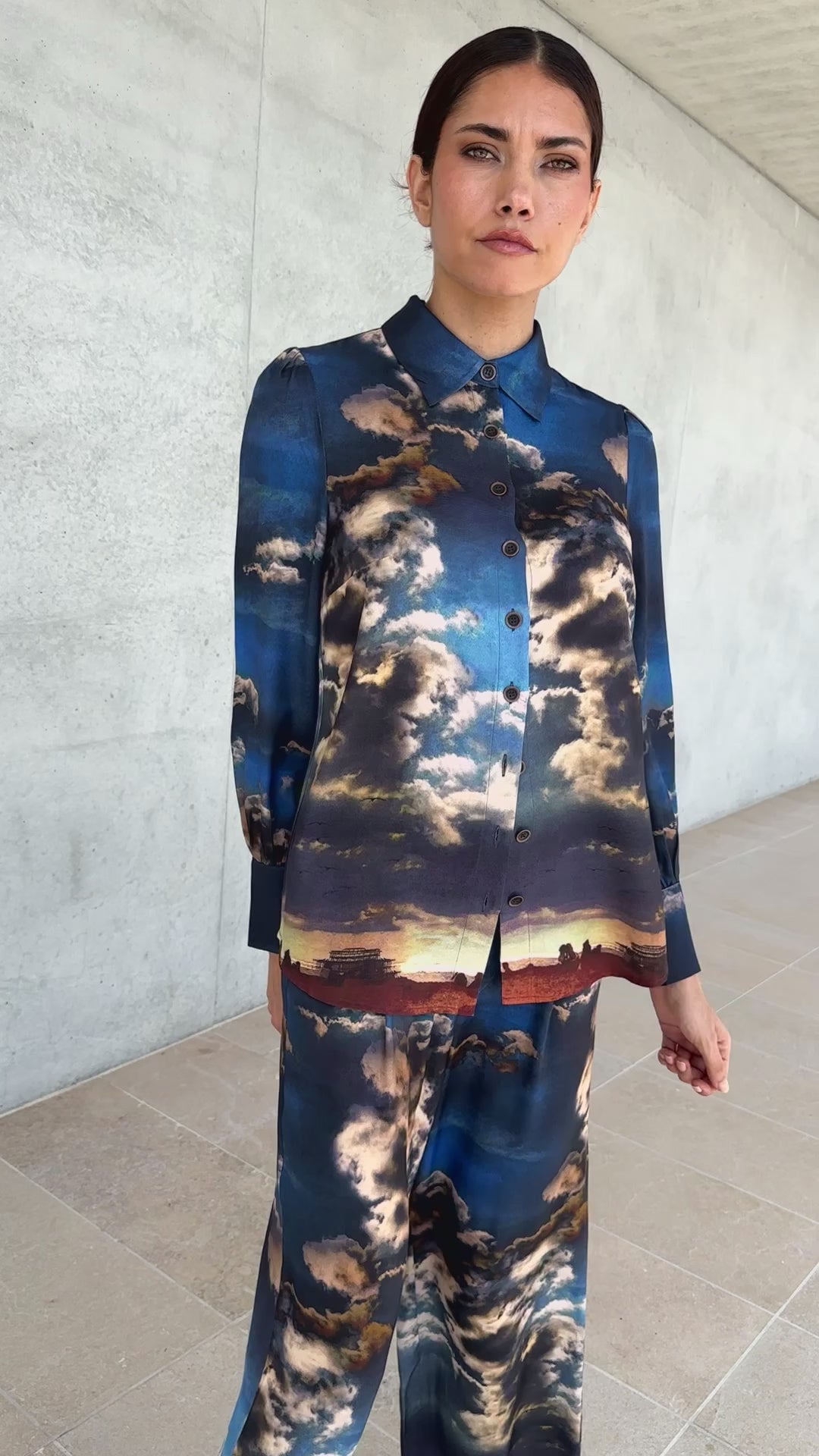 Chemise Aimé en viscose manches longues imprimé "nuage"