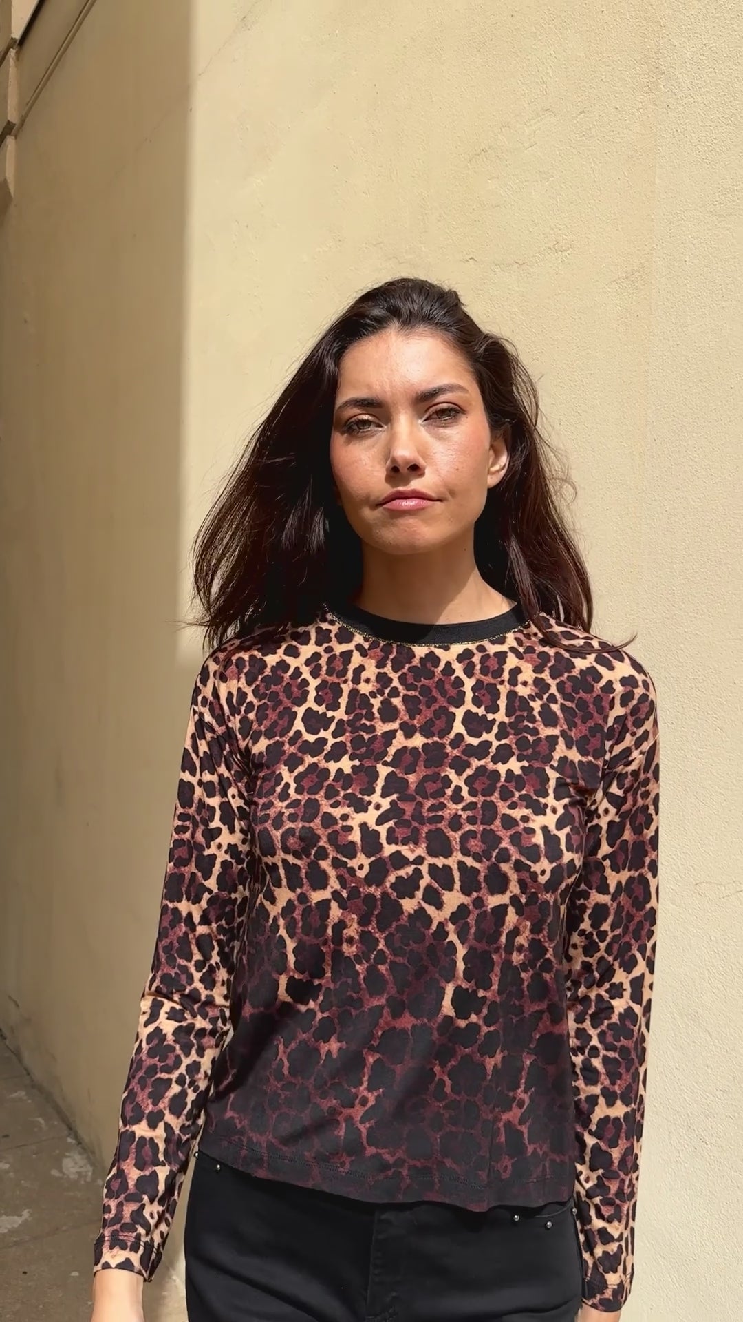 T-shirt Iris manches longues en viscose imprimé léopard Moka