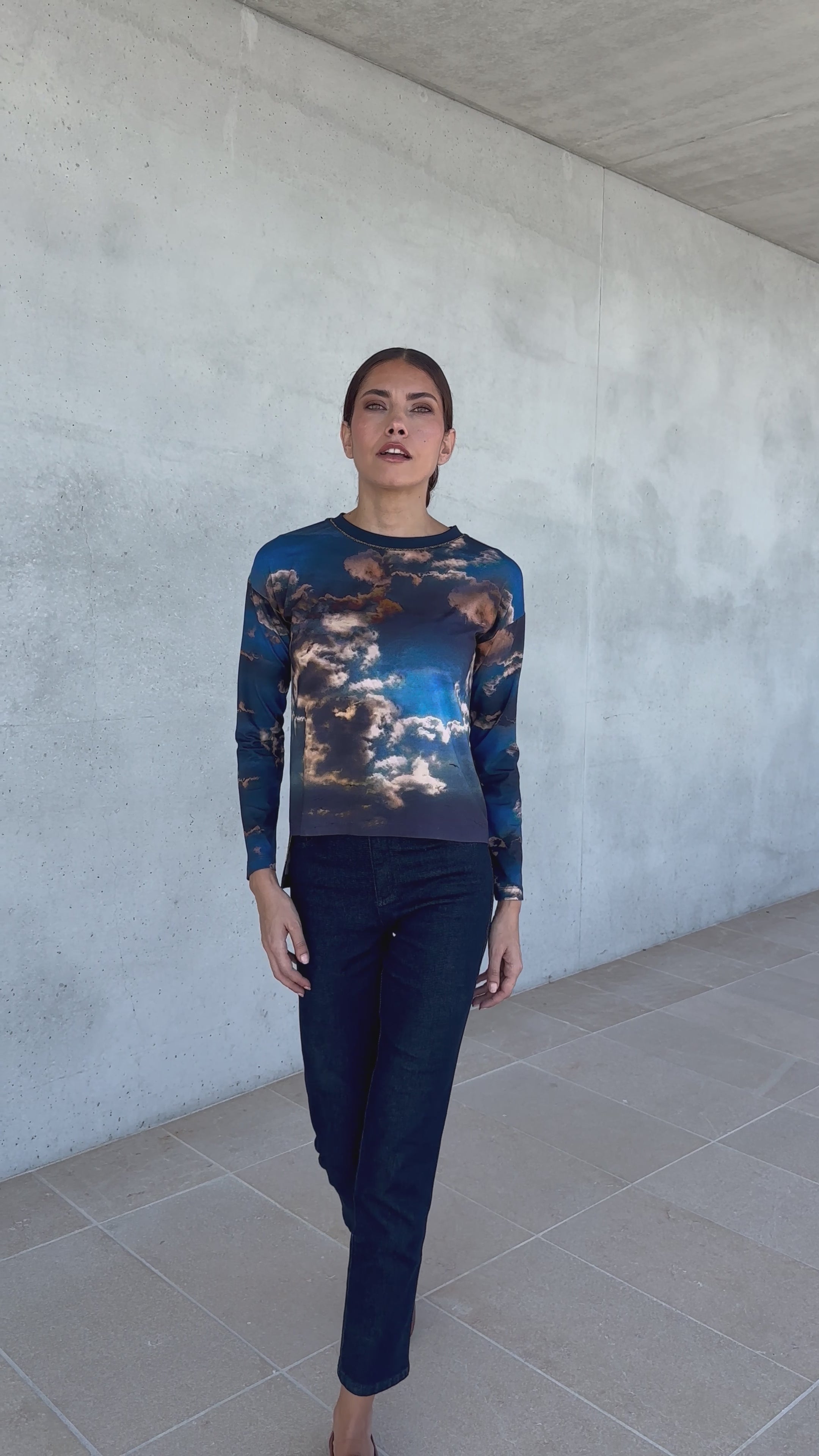T-shirt Iris manches longues en viscose imprimé "nuage"
