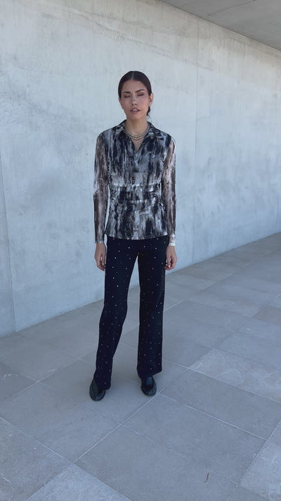 Le top Horizon capture l’esprit de liberté avec son imprimé B&M. Confectionné en maille résille à la fois chic et confortable, il associe modernité et douceur.